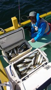その後は転々とポイントを攻めて、ほぼ中型揃いで好調にアタリが出て、少々小アジも混じりましたが最後は終了までジーっと我慢してポツポツと釣れて、皆さまお土産は確保出来ました。