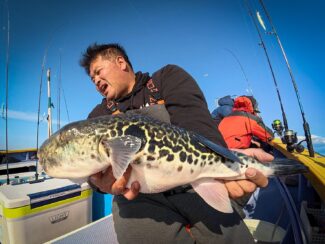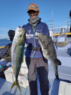 前日の釣果出船しましたが、午前中サワラ水面バラシを見たのが最後でどこに行っても姿見えずに終わってしまいましたが、ワラサ船中4本、マダイ3枚、トラフグ最大3キロ2匹でした。