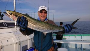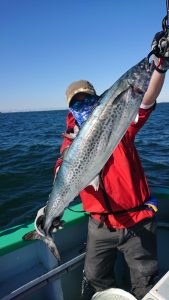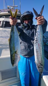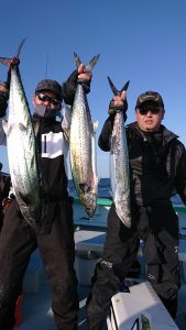 久しぶりに凪ぎ良く、鳥の動きやサワラのハネも良く確認は出来てコンディションは良かったのですが、サワラは小規模な群れらしく単発なヒットがほとんどで、じっくりとは流せませんでが、船中16本と皆さんに頑張って頂きました。