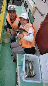 コメント : 今日は小アジの群れからスタートしましたが良型の群れがまとまった所でイカリを投入して狙いました。時々、小アジも入りましたが20~30センチの良型のダブルやトリプルもあり、水深9メートルと浅場だったのでアジの引きもダイレクトに味わえて、忙しい釣りになりました。終盤は潮の流れが弱まり小アジが優勢になりましたが終了まで好調に釣れました。2番手89匹。