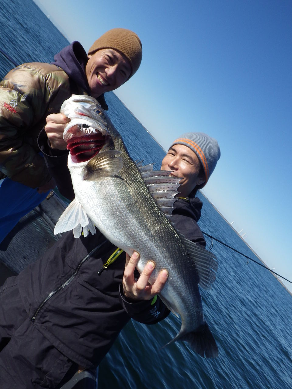 大きさ:45〜58cm匹 数:3〜10匹竿 頭:市川市の市川さまと、福井さまのお二人釣り場:木更津沖コメント(kazu)朝のうちは、広範囲に鳥山があり、シーバスの活性は非常に高かったものの、強風の中でバラシが多く、苦戦しました。後半は流れも弱まり風影のポイントもチェックしていきましたが、こちらはアタリが無く、一層風が強まり10時に早上がりさせていただきました。魚影は非常に濃いので風がおさまれば、期待大です。明日も出船予定してますので、よろしくお願いします。