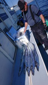 2番手19本で特大タチウオを水面でバレてしまったトップの平山樣は中盤のアタリの渋い時間帯以外はコンスタントにアタリは出ていました。