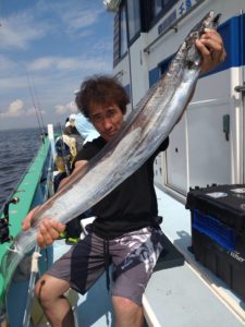 小ぶりなサイズばかりな時間帯もありましたが、全員メーターアップをキャッチとまでは行きませんでしたが、今日は大型タチウオの活性は幾分良かった様子でした。