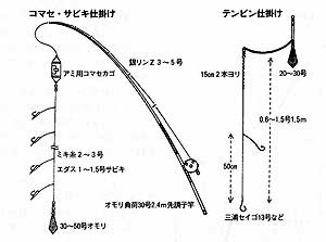 テ ン ビ ン・コ マ セ サ ビ キ 仕 掛 け の 釣 り