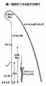 餌はイソメ類が多用され、ポイントに立って反復、潮なりにウキを流す。